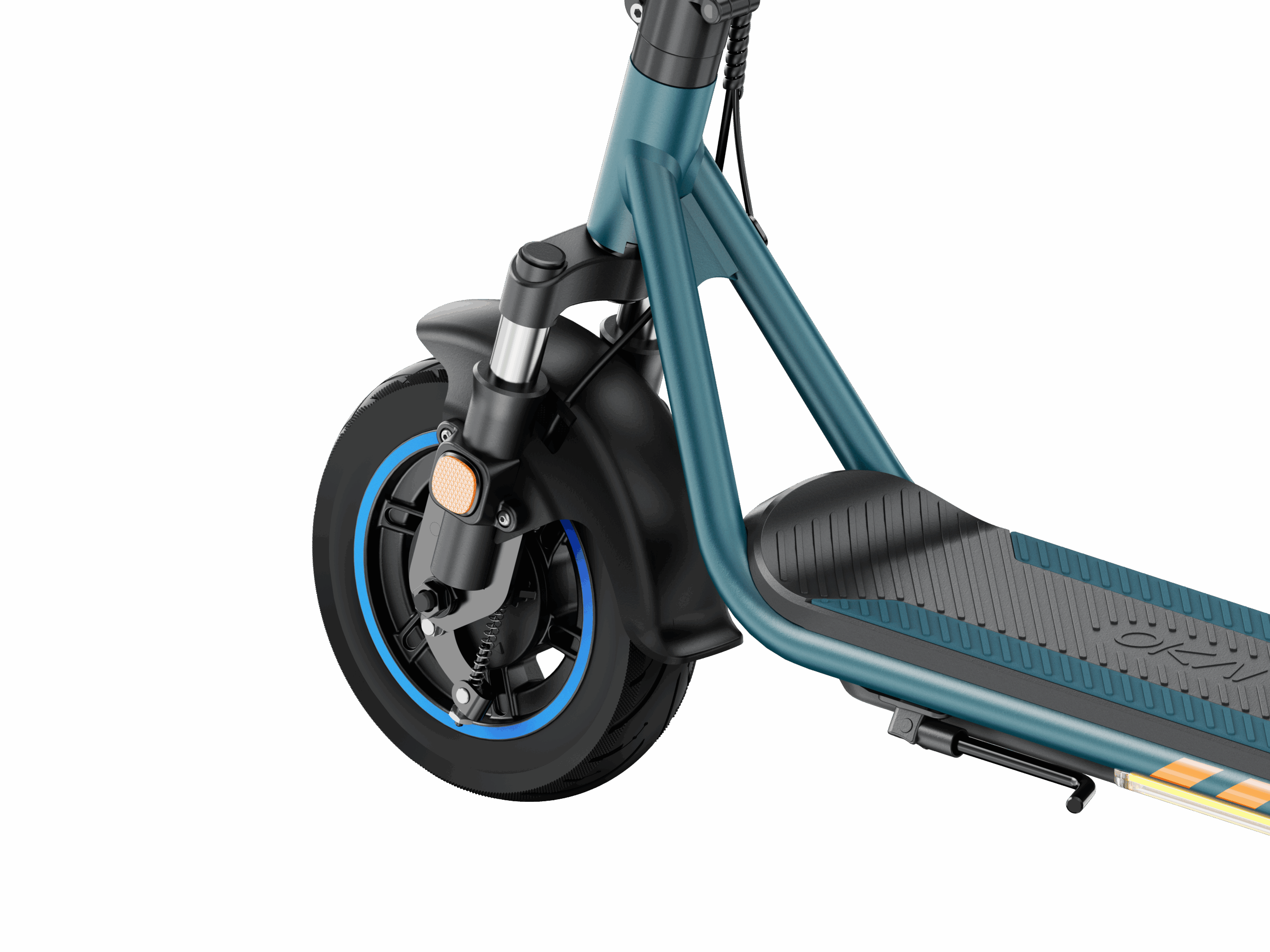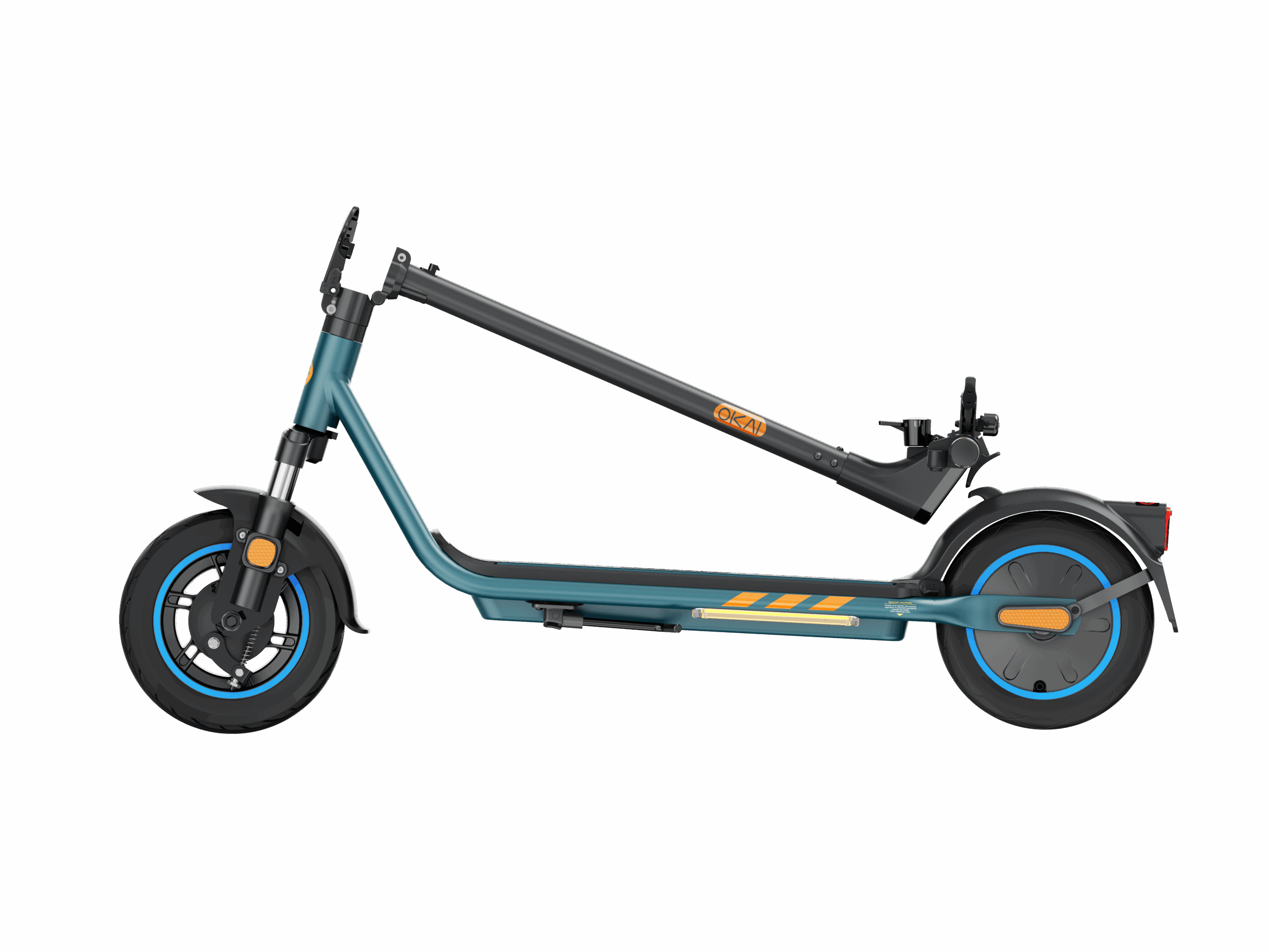 El OKAI ES53 Zippy Ultra combina motor de 300 W (pico 600 W), velocidad de 25 km/h y hasta 45 km de autonomía con batería 36 V 10,4 Ah. Tracción trasera, suspensión delantera y neumáticos inflables de 10″ brindan confort. Frenos: tambor delantero y regenerativo trasero. Pesa 18,5 kg, soporta 100 kg, es plegable, IPX5, con NFC y app OKAI.